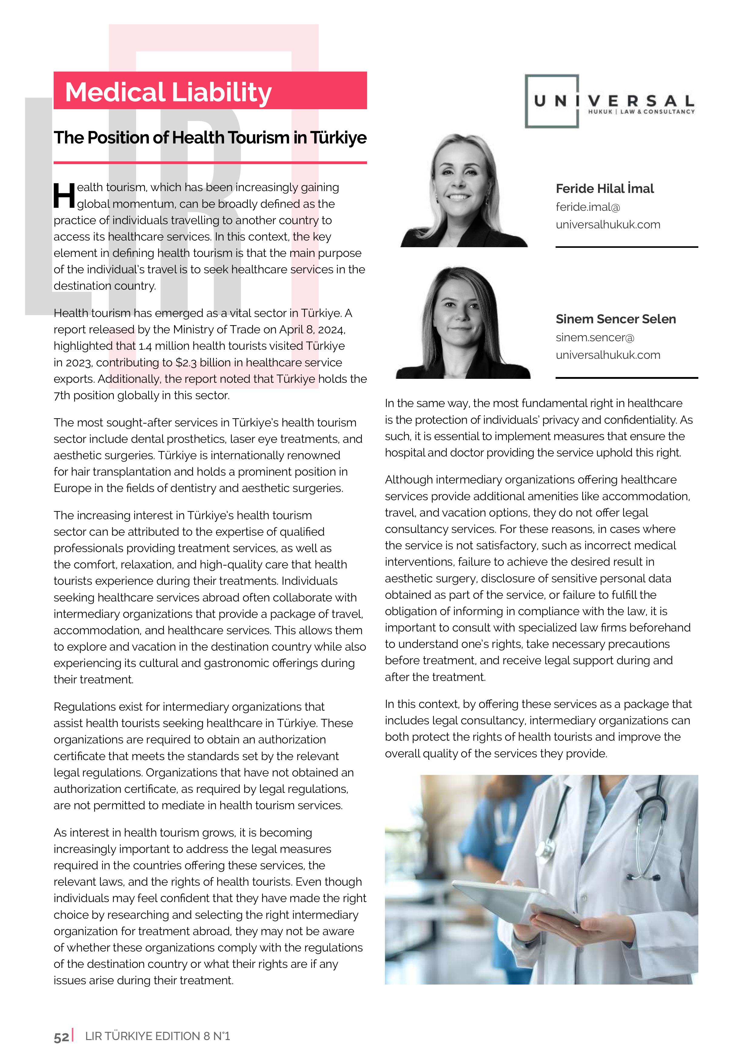 The Article Titled "The Position of Health Tourism in Türkiye," Written By Our Founding Partner, Feride Hilal İmal, and Our Partner, Sinem Sencer Selen, Has Been Published In The April Issue Of The Legal Industry Reviews: Türkiye!